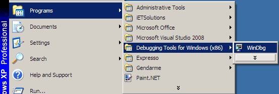 Start WinDbg from the Start Menu: