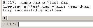 To obtain a full memory dump, which is the easiest thing to work with offline, you will use the .dump command with the /ma option. It will look like this: